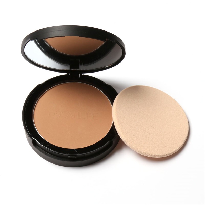 A pressed makeup powder to provide a natural or matte foundation finish.