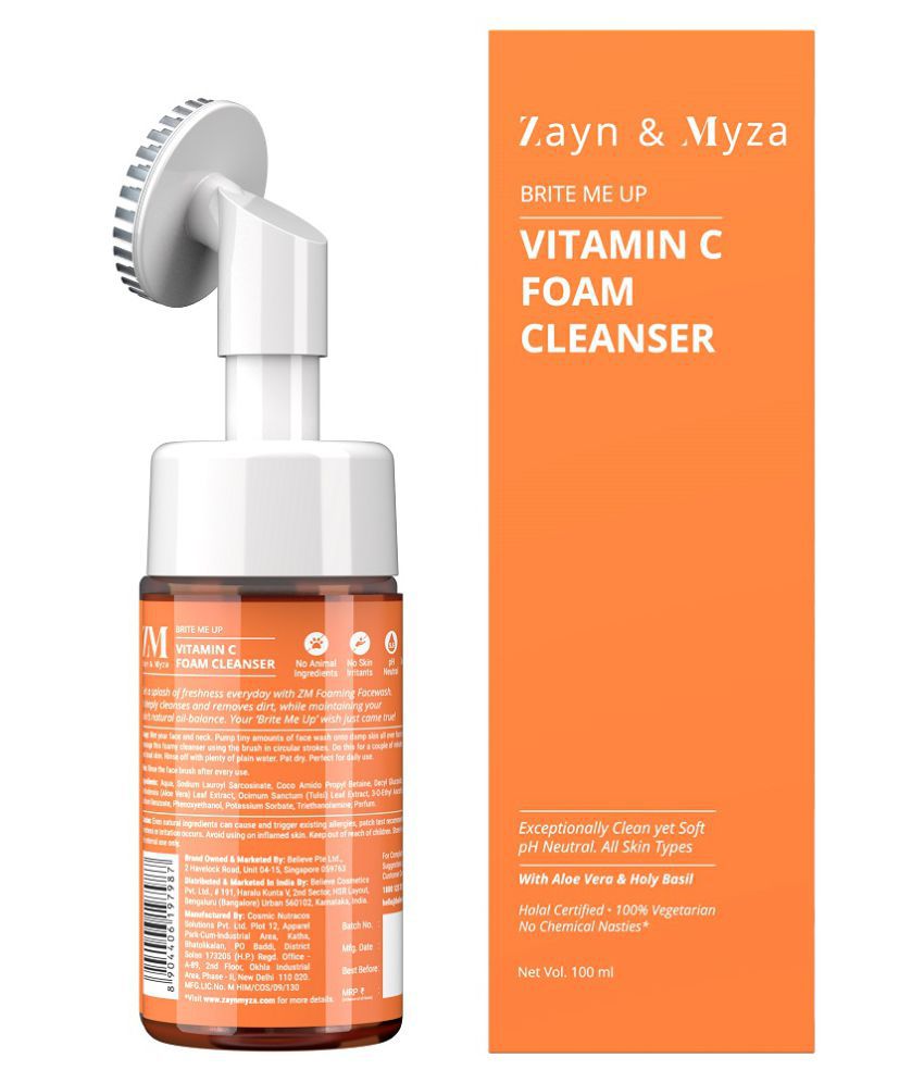ZM Zayn & Myza Vitamin C Foaming With Built-In Deep Cleansing Brush - Rich in Anti-oxidants, Retains Moisture, Deep Cleanses, Perfect For Daily Use For All Skin Types Face Wash (100 ml)